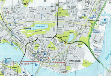 Peter svarede at der ligger et kort på hjemmesiden der viser de enkelte grundejerforeningers områder, henholdsvis Nørresundby, Lindholm og Nr. Uttrup, sidstnævnte har dog nedlagt sig selv efter kortets optegning. Kortet gengives her i referatet: